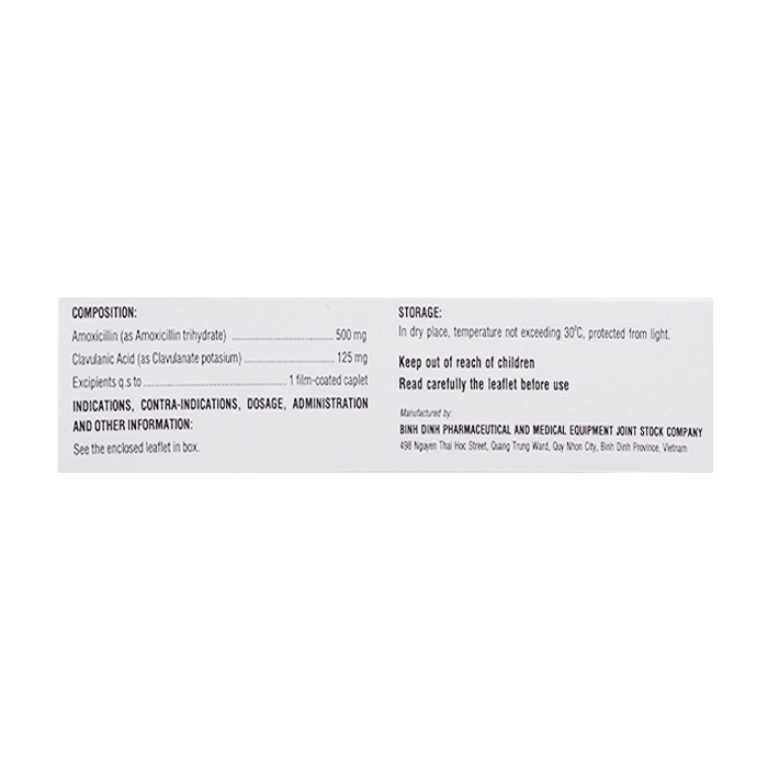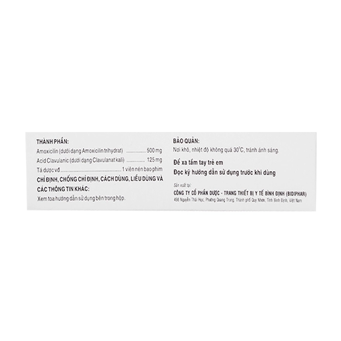 Augbidil 625 Bidiphar 2 vỉ x 7 viên (Amoxicillin Clavulanic acid)