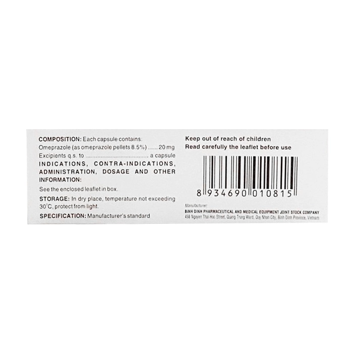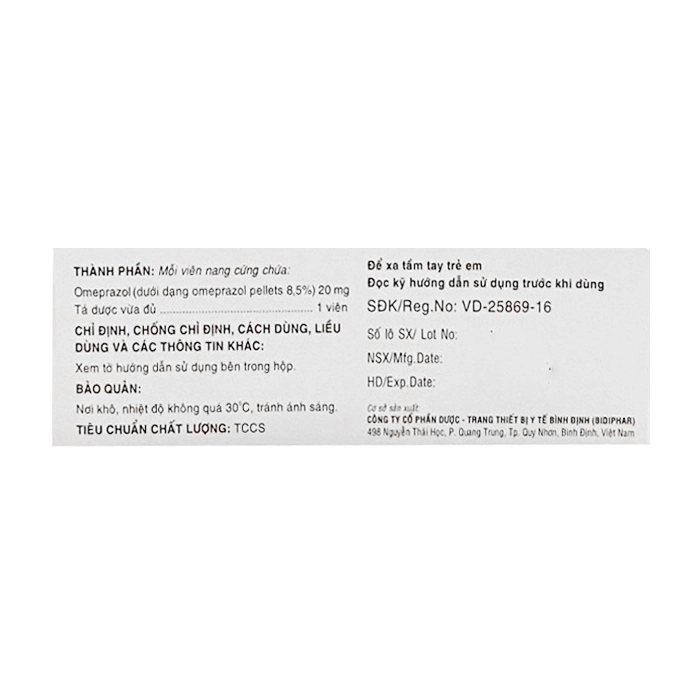 Oraptic 20 Bidiphar 5 vỉ x 4 viên (Omeprazole)