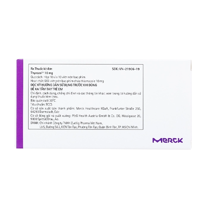 Thuốc cường giáp Thyrozol 10mg Thiamazole 10mg, Hộp 10 vỉ x 10 viên