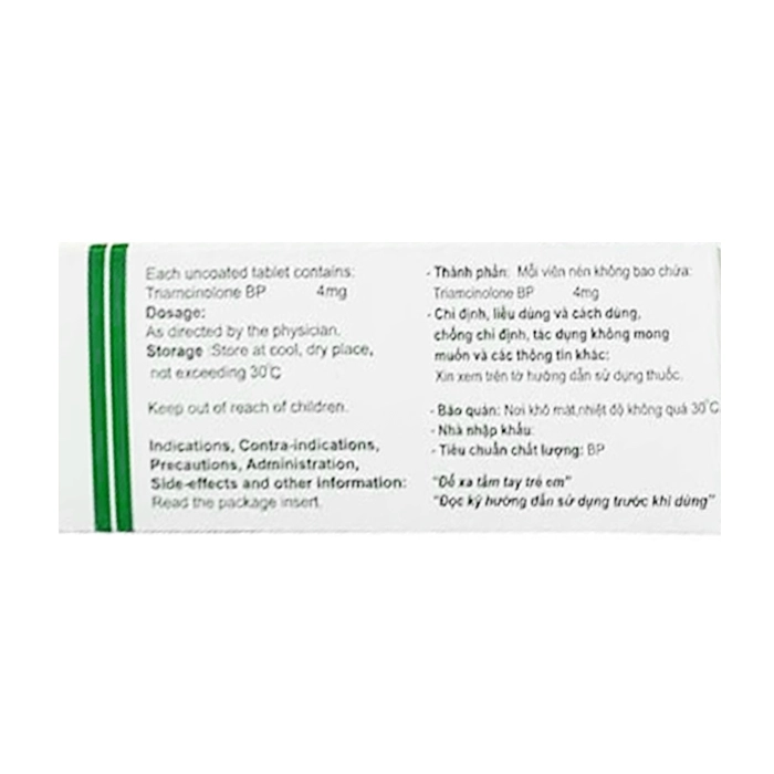 Triamcinolone 4mg Brawn 10 vỉ x 10 viên